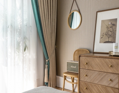 設(shè)計(jì)理念:泊遠(yuǎn)溫柔的豆汁黃,鮮活生動(dòng)的薄荷綠,大自然的覺(jué)醒配色。在這套配色下整個(gè)臥室都浸潤(rùn)著在醇厚的溫暖里,一份溫文爾雅的傾訴,一份屬于你的詩(shī)和遠(yuǎn)方。